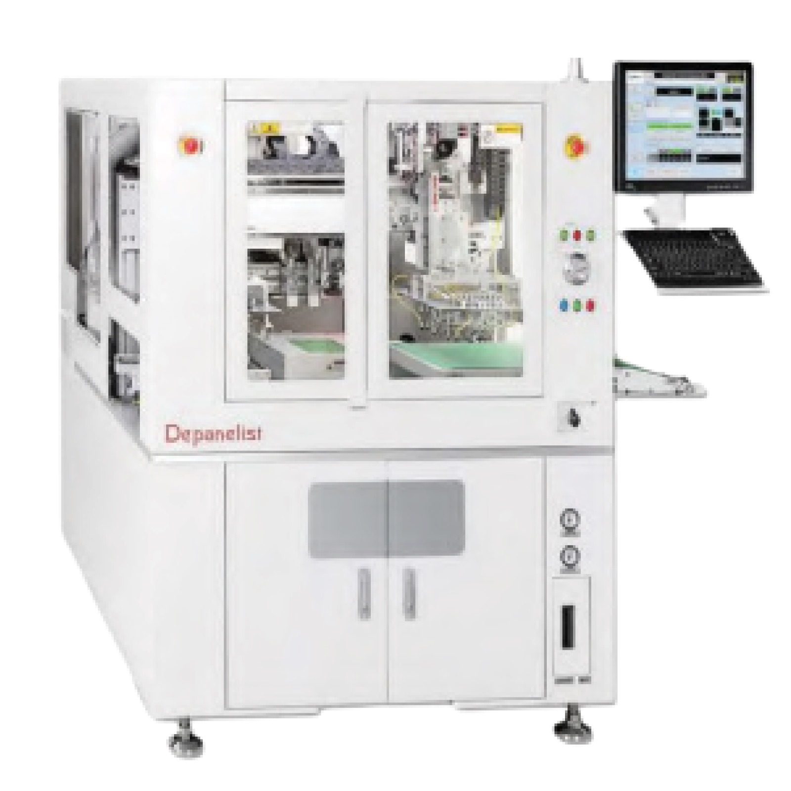 Sawing, Routing and laser depaneling are the key product categories. Offline systems are best suitable for stand-alone applications or where robotic systems are in-place. MSTECH offers productivity with Offline PCB depaneling system with Single Spindle to upto 4 Spindle configuration and Single table to dual table as Standard, Moebius system enables “ZERO” machine idle time. High efficiency dust collecting system for 0% remaining dust.